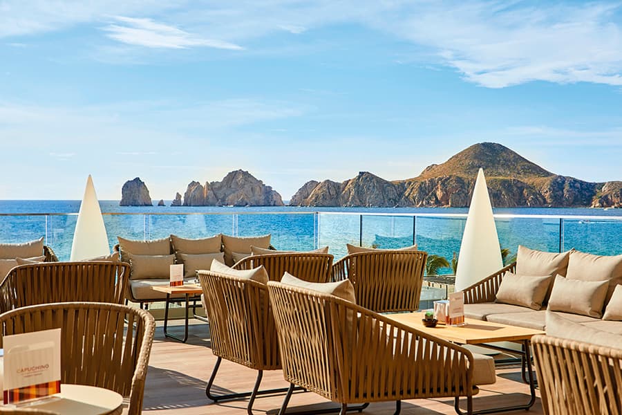 Enjoy a spacious and modern suite designed for comfort and relaxation. This bright retreat features a private furnished balcony, cozy seating area, refreshed minibar, and stylish décor—creating the perfect place to unwind after a day in the Cabo sunshine.
